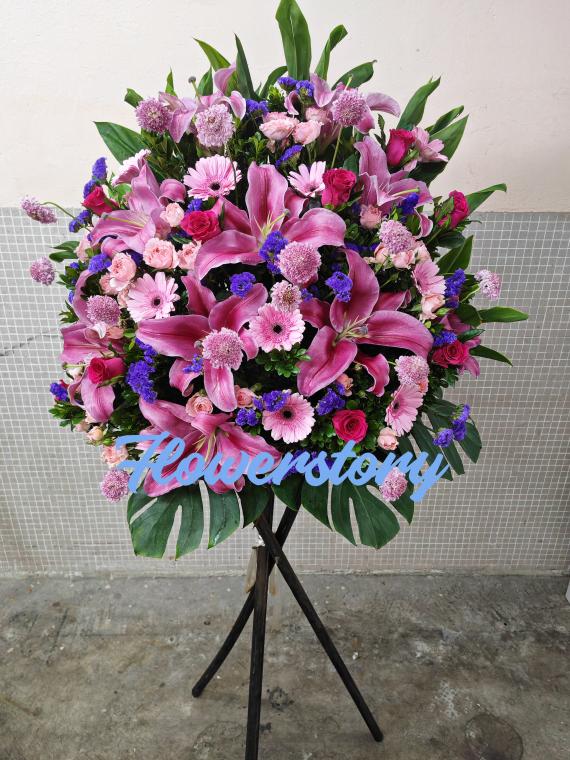 價格:$830.- 說明:火百合,粉太陽菊,蘇醒玫瑰,紫色萬代蘭