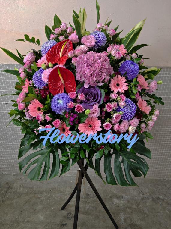 價格:$800.- 說明:粉繡球,紅掌,粉太陽,粉色珍珠玫瑰,紫色染波菊