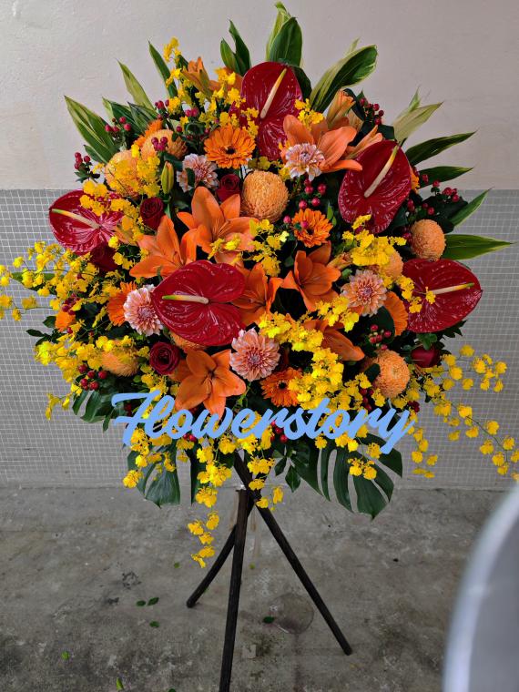 價格:$880.- 說明:紅掌,火百合,橙太陽菊,黃胡姬