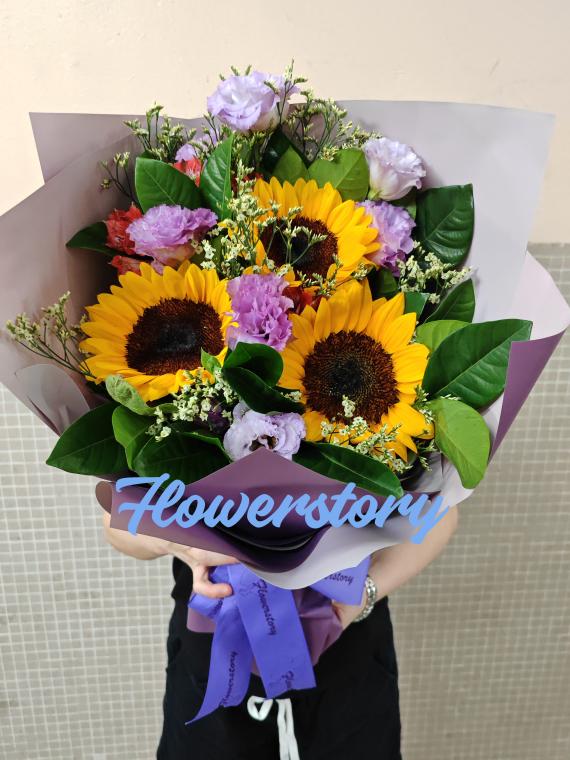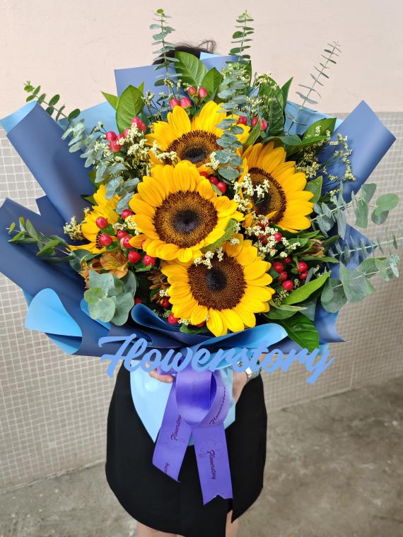價格:$750.- 說明:10支向日葵,青桔梗,紅豆